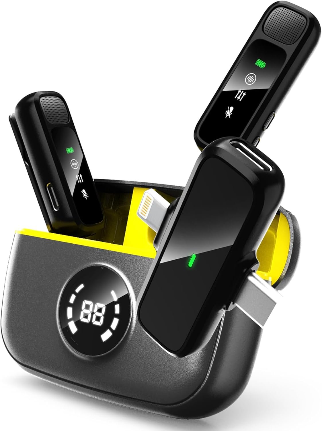 Wireless Lavalier Microphone for iPhone/Android – Dual Mini Noise Canceling Mic