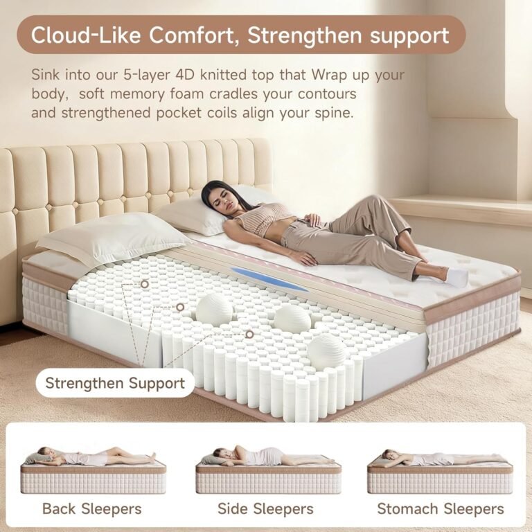 Queen Mattress 12 Inch in a Box, Medium Firm Feel Hybrid Queen Size Mattress, CertiPUR-US® Certified Memory Foam&Pocket Spring, Extra Lumbar & Shoulder Support for Pain Relief, 80”L x 60”W
